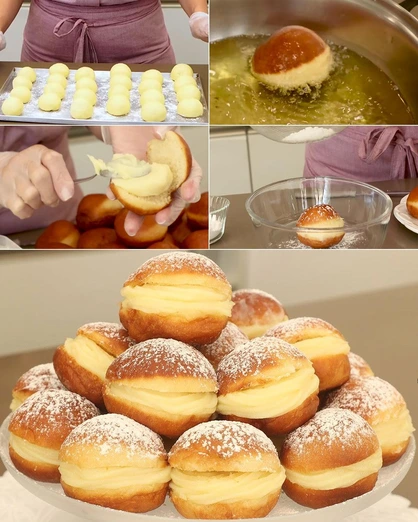 Bombas rellenas de crema pastelera con azúcar en polvo: Un Bocado Dulce que Despierta Recuerdos